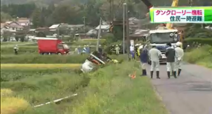 心優しきタンクローリー運転手 動物を避け水路に転落 住民避難 国道通行止め 川にオイルフェンス 車速報